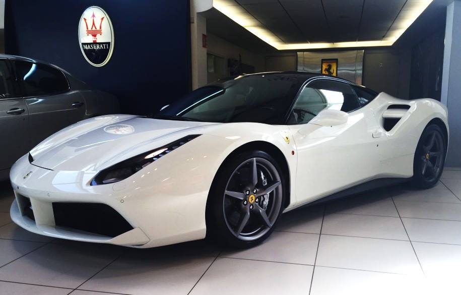 Celle que tout le monde voulait voir! La 488 GTB est l’évolution turbo de la 458. Pour nous, elle gagne en agressivité ce qu’elle perd en élégance.Pour ceux qui se demandaient encore comment avait été choisi l’appelation 488, il correspond simplement à la cylindrée divisée par le nombre de cylindres, soit 3902 / 8 = 488. Le gris Silverstone fait beaucoup mieux ressortir les formes de la 488 et en particulier pour les passages d’air du capot avant qui sont en fait beaucoup moins prononcés qu’il n’y parait.